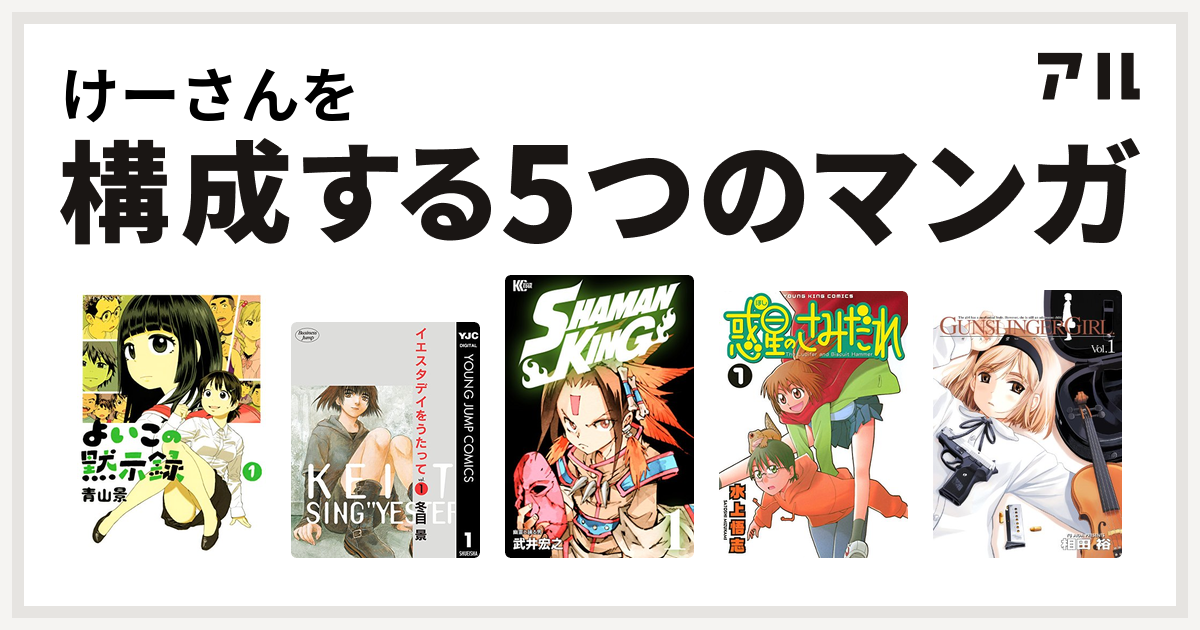 けーさんを構成するマンガはよいこの黙示録 イエスタデイをうたって Shaman King シャーマンキング 惑星のさみだれ Gunslinger Girl 私を構成する5つのマンガ アル